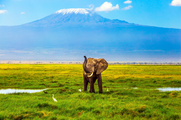 Elephants with views of Mt. Kilimanjaro